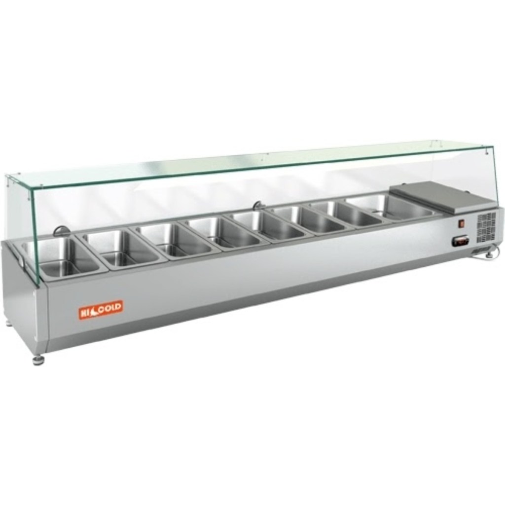 Каталог оборудования Холодильное оборудованиеВитрины для ингредиентовВитрина холодильная для ингредиентов HICOLD VRTG 1835 1/3 Витрина холодильная для ингредиентов HICOLD VRTG 1835 1/3 Код товара: 001-526 Поделиться: WhatsAppTelegram СравнитьДобавить в КПВ избранное 0 71 487 ₽ В корзину 0 шт В наличии на 1 складеДоступно для заказа 4 шт.Наличие на складахМоскваМО, Бритово, Раменский гор. округ, Складской комплекс ССТ, корп. 2, секция 2В наличии 4 шт.Самовывоз сегодня бесплатно Расчет стоимости доставкиОткудаМоскваКудаМоскваСанкт-ПетербургАстраханьБарнаулБелгородБрянскВладивостокВолгоградВоронежЕкатеринбургИвановоИжевскИркутскКазаньКалининградКемеровоКировКраснодарКрасноярскКурскЛипецкМагнитогорскМахачкалаНабережные ЧелныНижний НовгородНижний ТагилНовокузнецкНовосибирскОмскОренбургПензаПермьПятигорскРостов-на-ДонуРязаньСамараСаратовСимферопольСтавропольТверьТольяттиТомскТулаТюменьУлан-УдэУльяновскУфаХабаровскЧебоксарыЧелябинскЯрославльРассчитатьРасчет стоимости доставки указан приблизительный, более точный расчет Вам может осуществить сотрудник транспортной компании. Взять в кредит Купить в лизинг Получить консультацию в WhatsApp Описание Характеристики Отзывы 0 Инструкции 2 Витрина холодильная для ингредиентов HICOLD VRTG 1835 1/3 предназначена для охлаждения, кратковременного хранения и наглядной демонстрации ингредиентов, салатов и готовых блюд на предприятиях общественного питания и в торговых точках. Гастроёмкости в комплект не входят, приобретаются отдельно. Основные особенности: Корпус выполнен из нержавеющей стали, обеспечивая долговечность и легкость в уходе; Электронная панель управления для точной настройки температуры; Модель с надстройкой из стекла (исполнение G) для удобной демонстрации продуктов; Высота витрины — 225 мм, высота стеклянной надстройки — 205 мм; Вместимость: 7 гастроёмкостей GN1/3 и 1 гастроёмкость GN1/2; Опорные ножки для устойчивой установки на столешнице. HICOLD VRTG 1835 1/3— компактная и функциональная настольная витрина, идеально подходящая для демонстрации и кратковременного хранения продуктов на профессиональной кухне или в торговой зоне. Изображение товара, представленного на фото, может отличаться от его фактического вида. Показать все Габаритные размеры1835×385×459 ммДиапазон рабочей температурыот +2 до +7 °CДлина1835 ммГлубина385 ммВысота459 ммТип крышкиСтеклянная Гастроемкостей8 штТип гастроемкостейGN1/3, GN1/2 Мощность150 ВтНапряжение220 ВТип охлажденияСтатическое Материал изготовленияНержавеющая сталь ХладагентR134 Мощность0,15 кВтВес нетто 55 кгВес брутто102 кгТип оттайкиРучная Габариты в упаковке2030×590×550 ммБрендHicold Оставить отзыв Еще никто не оставил отзыв на этот товар Инструкция на HICOLD VRTG 1835.pdfДекларация о соответствии.pdf Похожие товары Перейти в каталог Под заказ 53 040 ₽ Витрина холодильная для ингредиентов TEFCOLD VK33-180 С этим товаром покупают В наличии 83 719 ₽ Шкаф холодильный МХМ Капри 0,7М Ранее просмотрено В наличии 73 000 ₽ Витрина холодильная для ингредиентов HICOLD VRTG 1970 1/4