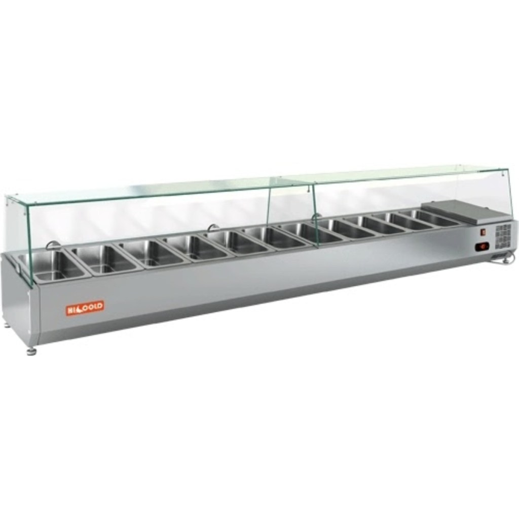 Каталог оборудования Холодильное оборудованиеВитрины для ингредиентовВитрина холодильная для ингредиентов HICOLD VRTG 2280 1/3 Витрина холодильная для ингредиентов HICOLD VRTG 2280 1/3 Код товара: 001-528 Поделиться: WhatsAppTelegram СравнитьДобавить в КПВ избранное 0 84 879 ₽ В корзину 0 шт Под заказСамовывоз сегодня бесплатно Взять в кредит Купить в лизинг Получить консультацию в Max Описание Характеристики Отзывы 0 Инструкции 2 Витрина холодильная для ингредиентов HICOLD VRTG 2280 1/3 предназначена для охлаждения, кратковременного хранения и наглядной демонстрации ингредиентов, салатов и готовых блюд на предприятиях общественного питания и в торговых точках. Гастроёмкости в комплект не входят, приобретаются отдельно. Основные особенности: Корпус выполнен из нержавеющей стали, обеспечивая долговечность и легкость в уходе; Электронная панель управления для точной настройки температуры; Модель с надстройкой из стекла (исполнение G) для удобной демонстрации продуктов; Высота витрины — 225 мм, высота стеклянной надстройки — 205 мм; Вместимость: 11 гастроёмкости GN1/3; Опорные ножки для устойчивой установки на столешнице. HICOLD VRTG 2280 1/3 — компактная и функциональная настольная витрина, идеально подходящая для демонстрации и кратковременного хранения продуктов на профессиональной кухне или в торговой зоне.Изображение товара, представленного на фото, может отличаться от его фактического вида. Показать все Габаритные размеры2280×385×459 ммДиапазон рабочей температурыот +2 до +7 °CДлина2280 ммГлубина385 ммВысота459 ммТип крышкиСтеклянная Гастроемкостей11 штТип гастроемкостейGN1/3 Мощность150 ВтРасход электроэнергии в сутки0,15 кВтНапряжение220 ВТип охлажденияСтатическое Материал изготовленияНержавеющая сталь ХладагентR134 Мощность0,15 кВтВес нетто65 кгВес брутто109 кгТип оттайкиРучная Габариты в упаковке2380×485×559 ммБрендHicold Оставить отзыв Еще никто не оставил отзыв на этот товар Инструкция на HICOLD VRTG 2280.pdfДекларация о соответствии.pdf Похожие товары Перейти в каталог В наличии 38 993 ₽ Витрина холодильная для ингредиентов HURAKAN HKN-VRX1500/330 Под заказ 63 172 ₽ Витрина холодильная для ингредиентов HICOLD VRX 1500 1/4 Под заказ 89 578 ₽ Витрина холодильная для ингредиентов HICOLD VRTG 2360 к PZ3 (1/3) Под заказ 69 274 ₽ Витрина холодильная для ингредиентов HICOLD VRTG 1970 к PZ3 (1/4) В наличии 50 427 ₽ Витрина холодильная для ингредиентов HICOLD VRTO 1390 1/3 Под заказ 51 946 ₽ Витрина для ингредиентов Carboma A40 SM 1,2 (3 GN 1/3 + 1 GN 1/2) с крышкой Под заказ 64 899 ₽ Витрина холодильная для ингредиентов HICOLD VRX 1600 1/4 Под заказ 64 413 ₽ Витрина холодильная для ингредиентов HICOLD VRTG 1425 к PZ4 (1/3) С этим товаром покупают Под заказ 108 891 ₽ Стол морозильный HiCold SN 1/BT Под заказ 51 621 ₽ Льдогенератор HURAKAN HKN-IMF20 (пальчики) В наличии 72 582 ₽ Шкаф холодильный Polair СМ 105-S
