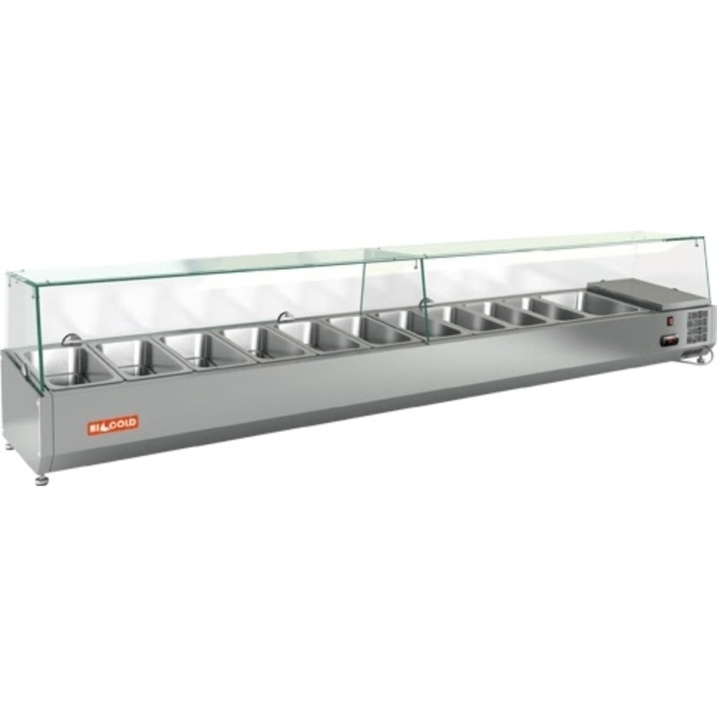 Каталог оборудования Холодильное оборудованиеВитрины для ингредиентовВитрина холодильная для ингредиентов HICOLD VRTG 2360 1/3 Витрина холодильная для ингредиентов HICOLD VRTG 2360 1/3 Код товара: 064-449 Поделиться: WhatsAppTelegram СравнитьДобавить в КПВ избранное 0 89 847 ₽ В корзину 0 шт Под заказСамовывоз сегодня бесплатно Взять в кредит Купить в лизинг Получить консультацию в WhatsApp Описание Характеристики Отзывы 0 Инструкции 2 Витрина холодильная для ингредиентов HICOLD VRTG 2360 1/3 предназначена для охлаждения, кратковременного хранения и наглядной демонстрации ингредиентов, салатов и готовых блюд на предприятиях общественного питания и в торговых точках. Гастроёмкости в комплект не входят, приобретаются отдельно. Основные особенности: Корпус выполнен из нержавеющей стали, обеспечивая долговечность и легкость в уходе; Электронная панель управления для точной настройки температуры; Модель с надстройкой из стекла (исполнение G) для удобной демонстрации продуктов; Высота витрины — 225 мм, высота стеклянной надстройки — 205 мм; Вместимость: 10 гастроёмкостей GN1/3 + 1 гастроёмкость GN1/2; Опорные ножки для устойчивой установки на столешнице. HICOLD VRTG 2360 1/3 — компактная и функциональная настольная витрина, идеально подходящая для демонстрации и кратковременного хранения продуктов на профессиональной кухне или в торговой зоне.Изображение товара, представленного на фото, может отличаться от его фактического вида. Показать все Габаритные размеры2360×385×459 ммДиапазон рабочей температурыот +2 до +7 °CДлина2360 ммГлубина385 ммВысота459 ммТип крышкиСтеклянная Гастроемкостей11 штТип гастроемкостейGN1/3, GN1/2 Мощность0,15 ВтНапряжение220 ВТип охлажденияСтатическое Материал изготовленияНержавеющая сталь ХладагентR134 Вес нетто67 кгВес брутто107 кгТип оттайкиРучная Габариты в упаковке2460×485×559 ммБрендHicold Оставить отзыв Еще никто не оставил отзыв на этот товар Инструкция на HICOLD VRTG 2360.pdfДекларация о соответствии.pdf Похожие товары Перейти в каталог Под заказ 53 938 ₽ Витрина холодильная для ингредиентов HICOLD VRTU 1425 к PZ4 (1/3) Под заказ 56 800 ₽ Витрина холодильная для ингредиентов HICOLD VRTO 2010 Под заказ 67 745 ₽ Витрина для ингредиентов Polair VT2vEN (1/3) с подсветкой и защитным колпаком В наличии 65 926 ₽ Витрина холодильная для ингредиентов HICOLD VRTG 1485 к PZE3 (1/3) Под заказ 51 022 ₽ Витрина холодильная для ингредиентов HICOLD VRTO 1485 к PZE3 (1/3) Под заказ 67 762 ₽ Витрина холодильная для ингредиентов HICOLD VRTG 1835 к PZ3 (1/4) Под заказ 73 971 ₽ Витрина холодильная для ингредиентов HICOLD VRX 2000 1/3 Под заказ 55 611 ₽ Витрина холодильная для ингредиентов HICOLD VRTG 1000 1/4 С этим товаром покупают Под заказ 135 754 ₽ Шкаф холодильный универсальный Arkto V1.4-SD В наличии 131 936 ₽ Шкаф морозильный HURAKAN HKN-GX650BT В наличии 114 603 ₽ Шкаф холодильный универсальный МХМ Капри 1,12 УМ Под заказ 171 076 ₽ Шкаф морозильный МХМ Капри 1,12Н нержавейка В наличии 96 390 ₽ Шкаф холодильный Полюс Carboma R560 Под заказ 129 370 ₽ Шкаф холодильный универсальный Polair CV107-Sm Alu В наличии 151 860 ₽ Шкаф морозильный с глухой дверью TEFCOLD RF500SNACK нержавеющий Под заказ 83 514 ₽ Шкаф холодильный Север ШХ-500 СТ/ГЛ Ранее просмотрено Под заказ 55 287 ₽ Витрина холодильная для ингредиентов HICOLD VRTU 1835 1/4 В наличии 60 796 ₽ Витрина холодильная для ингредиентов HICOLD VRTU 1970 1/4