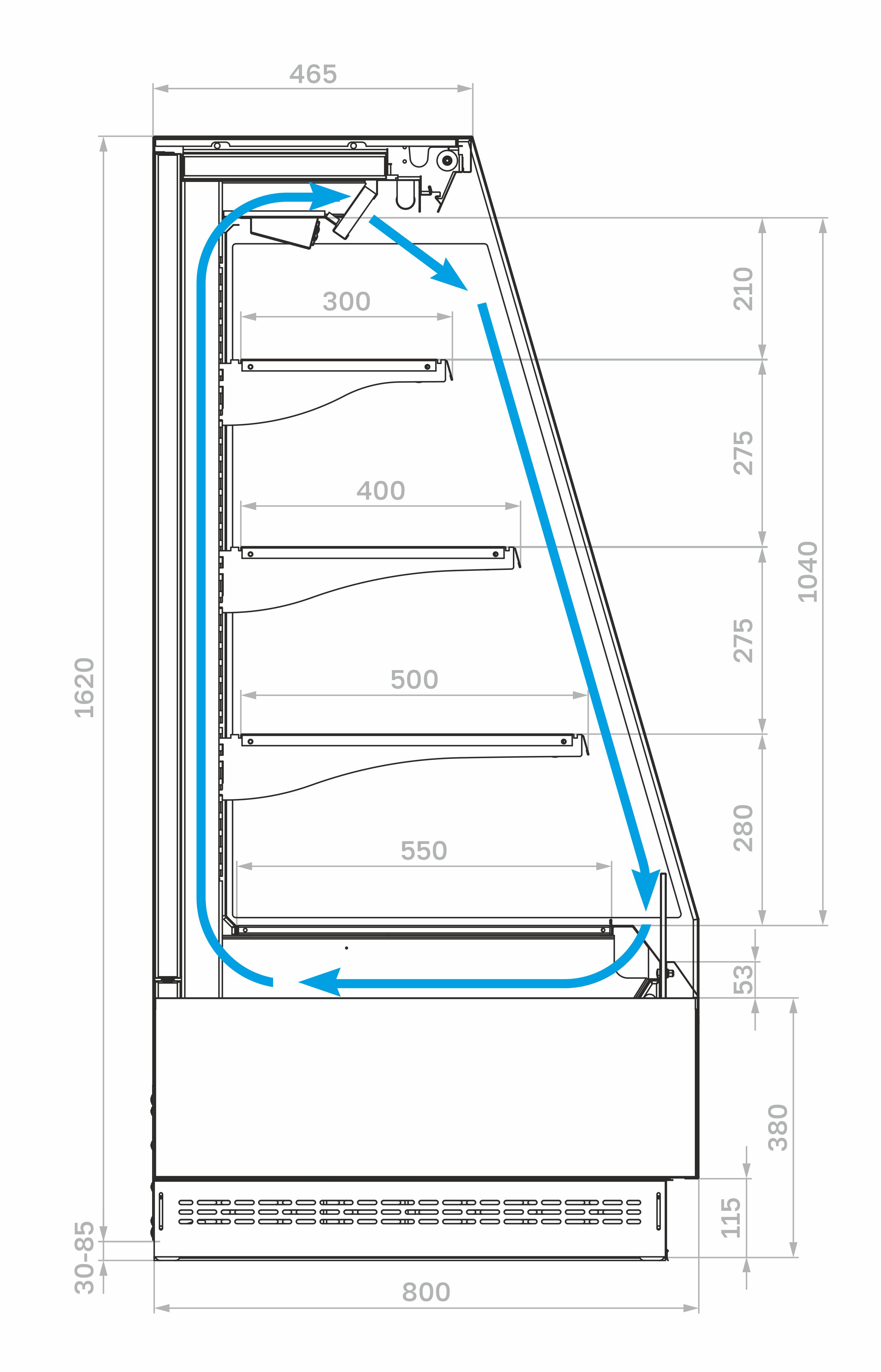 Боковины – прозрачные стеклопакеты для энергосбережения и оптимального обзора продукции.