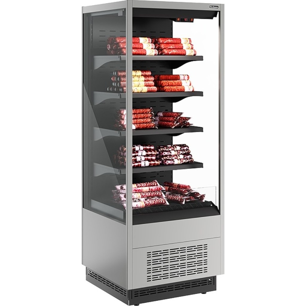 Carboma FC20-07 VM 0,7-2 (версия 2.0) (индивидуальное исполнение) — это функциональное и надёжное решение для предприятий общественного питания и торговли. Она обеспечивает стабильное динамическое охлаждение, экономичное энергопотребление и удобную демонстрацию продукции за счёт продуманной конструкции с четырьмя регулируемыми полками.