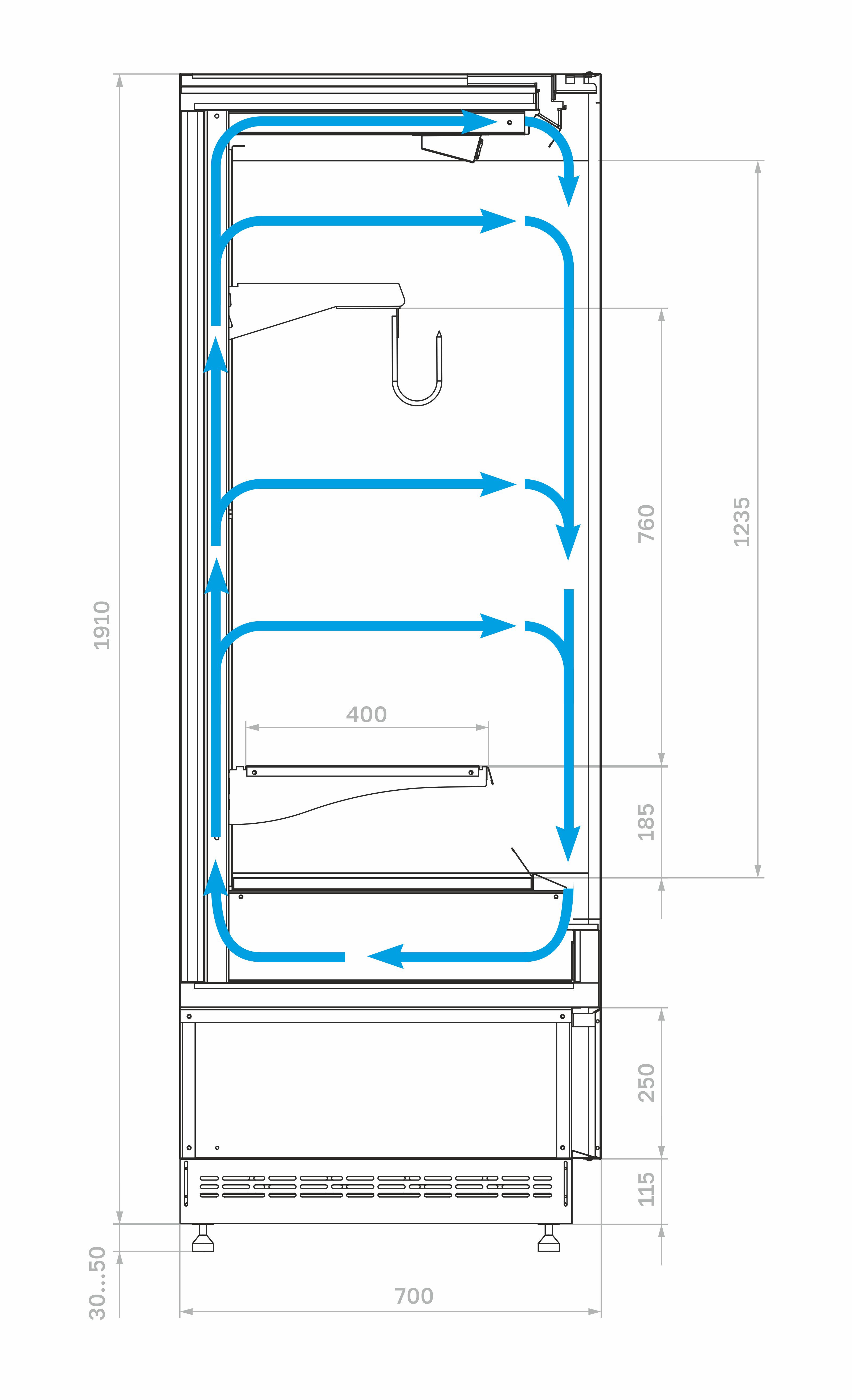 Горка холодильная Carboma FC20-07 VV 0,7-1 STANDARD фронт X7 (версия 2.0) (0430) используется на предприятиях общественного питания и торговли для кратковременного хранения и предпродажной демонстрации мясной продукции.