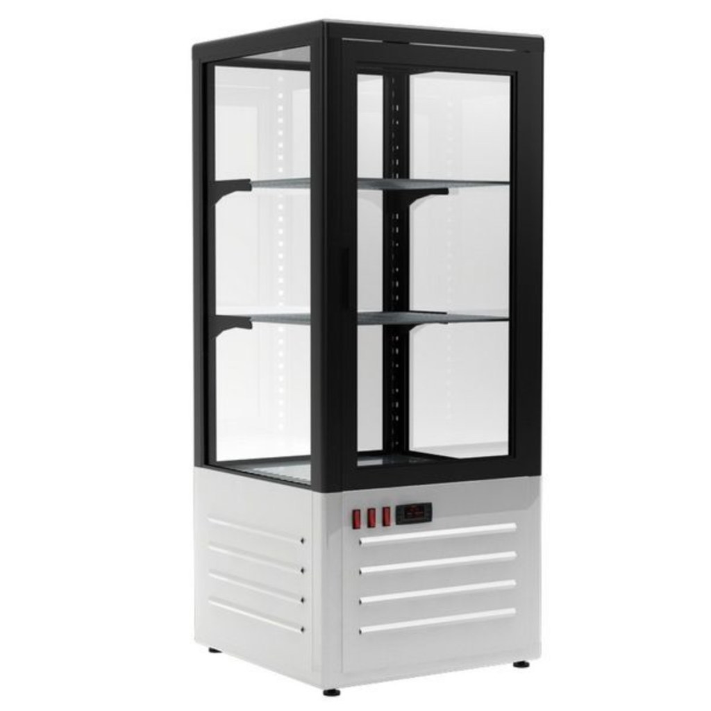 Благодаря динамической системе охлаждения, температура внутри витрины распределяется равномерно, обеспечивая стабильные условия хранения. Модель отличается превосходной обзорностью: витрина остеклена с трёх сторон и дополнена прозрачной дверцей с прочным стеклом (5 мм), что делает продукцию хорошо заметной с любого ракурса.