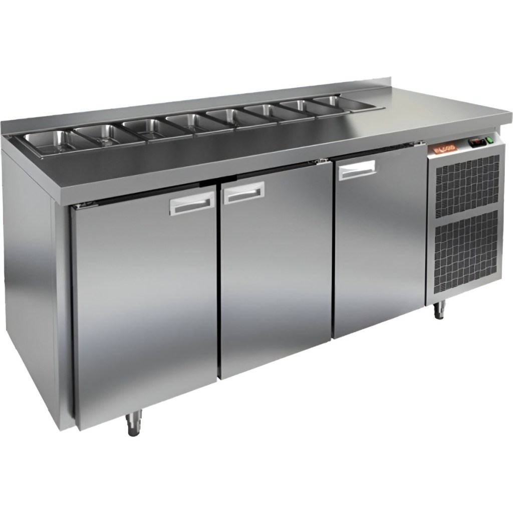 Каталог оборудования Холодильное оборудованиеСтолы охлаждаемыеСтолы холодильные для салатовСтол холодильный для салатов HiCold SL1-111GN (1/3) без крышки Стол холодильный для салатов HiCold SL1-111GN (1/3) без крышки Код товара: 064-517 Поделиться: WhatsAppTelegram СравнитьДобавить в КПВ избранное 0 163 612 ₽ В корзину 0 шт Под заказСамовывоз сегодня бесплатно Взять в кредит Купить в лизинг Получить консультацию в WhatsApp Описание Характеристики Отзывы 0 Инструкции 2 Стол холодильный для салатов HiCold SL1-111GN (1/3) без крышки предназначен для предприятий общественного питания и торговли. Он обеспечивает хранение и подготовку ингредиентов для пиццы, салатов и других блюд, а также охлаждение и кратковременное хранение скоропортящихся продуктов. Модель сочетает рабочую поверхность и холодильный объем, позволяя повару иметь все необходимые компоненты под рукой. Корпус и столешница выполнены из нержавеющей стали, обеспечивая надежность и долговечность. Особенности: Динамическая система охлаждения — равномерное распределение температуры внутри холодильного объема. Автоматическая оттайка — упрощает уход за оборудованием. Электронная панель управления — точная настройка температуры и режимов работы. 3 вместительные внутренние полки формата GN 1/1 — удобное хранение ингредиентов. Автоматические доводчики дверей с фиксатором открытого положения — комфорт и безопасность работы. Легкозаменяемые магнитные уплотнители — простота обслуживания. Открытая агрегатная часть — облегчает доступ для обслуживания. Регулируемые по высоте ножки — адаптация к рабочей поверхности. Столешница с бортом, толщина столешницы и теплоизоляции 50 мм — надежная защита и удобство работы. Размер полки: 530×325мм (GN 1/1) Максимальная глубина гастроемкостей: 100 мм HiCold SL1-111GN (1/3) без крышки — многофункциональный и надежный стол для профессиональной кухни. Обеспечивает удобство работы, эффективное охлаждение и безопасное хранение продуктов. Мобильная модификация с колёсами позволяет легко перемещать стол, что делает его идеальным для ресторанов, кафе и пиццерий.Изображение товара, представленного на фото, может отличаться от его фактического вида. Показать все Габаритные размеры1835×700×850 ммДиапазон рабочей температурыот +2 до +10 °CРасположение агрегатаБоковое Материал столешницыНержавеющая Тип столаС дверьми Тип двериГлухая Объём505 лКоличество дверей3 штТип гастроемкостейGN 1/3 Размер полки530×325 ммНапряжение220 ВМощность0,46 кВтТип охлажденияДинамический Тип оттайкиАвтоматическая СтолешницаС бортом Вес нетто120 кгВес брутто183 кгБрендHicold Оставить отзыв Еще никто не оставил отзыв на этот товар Паспорт на HICOLD SL1-111GN.pdfДекларация о соответствии.pdf Ранее просмотрено Под заказ 201 682 ₽ Стол холодильный для салатов HiCold SL2-22GN (1/6) без крышки Под заказ 164 961 ₽ Стол холодильный для салатов HiCold SL2-11SN (1/6) М с крышкой Под заказ 168 382 ₽ Стол холодильный для салатов HiCold SLE2-1111GN (1/6) О без крышки Под заказ 239 032 ₽ Стол холодильный для салатов HiCold SLE2-222GN (1/6) О с крышкой Под заказ 140 482 ₽ Стол холодильный для салатов HiCold SL2-11GN (1/6) без крышки Под заказ 778 444 ₽ Котел пищеварочный Аbat КПЭМ-160-ОМ2 со сливным краном