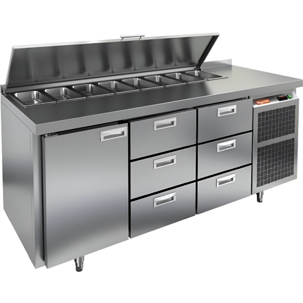 Каталог оборудования Холодильное оборудованиеСтолы охлаждаемыеСтолы холодильные для салатовСтол холодильный для салатов HiCold SL1-133GN (1/3) с крышкой Стол холодильный для салатов HiCold SL1-133GN (1/3) с крышкой Код товара: 064-848 Поделиться: WhatsAppTelegram СравнитьДобавить в КПВ избранное 0 209 962 ₽ В корзину 0 шт Под заказСамовывоз сегодня бесплатно Взять в кредит Купить в лизинг Получить консультацию в WhatsApp Описание Характеристики Отзывы 0 Стол холодильный для салатов HiCold SL1-133GN (1/3) предназначен для использования на предприятиях общественного питания и торговли. Он объединяет рабочую поверхность и охлаждаемый отсек, что делает его удобным решением для хранения, охлаждения и подготовки ингредиентов при приготовлении салатов, пиццы и других блюд. Такая конструкция позволяет повару работать быстрее и эффективнее, так как все необходимые продукты находятся под рукой. Корпус и столешница выполнены из прочной нержавеющей стали, устойчивой к коррозии и легко поддающейся санитарной обработке. Металлическая крышка защищает продукты от загрязнений и сохраняет их свежесть. Особенности модели: Электронная панель управления — точная настройка температурного режима. 1 глухая дверь — удобный доступ к холодильному отсеку. 6 выдвижных ящика — быстрое размещение и замена продуктов. Вместимость салат-бара — до 8 гастроемкостей глубиной до 100 мм. Автоматические доводчики дверей с фиксацией в открытом положении. Легкозаменяемые магнитные уплотнители — надежная герметичность. Открытая агрегатная часть — быстрый доступ для обслуживания. Регулируемые по высоте ножки — устойчивость даже на неровном полу. Толщина столешницы, борта и теплоизоляции — 50 мм, что обеспечивает прочность и энергоэффективность конструкции. HiCold SL1-133GN (1/3) — практичное и удобное решение для профессиональной кухни, обеспечивающее удобную подготовку и хранение ингредиентов. Изображение товара, представленного на фото, может отличаться от его фактического вида. Показать все Габаритные размеры1835×700×850 ммДиапазон рабочей температурыот +2 до +10 °CРасположение агрегатаБоковое Материал столешницыНержавеющая Тип столаС дверьми и ящиками Тип двериГлухая Объём505 лКоличество дверей1 штТип гастроемкостейGN 1/3 Количество ящиков6 штРазмер полки530×325 ммНапряжение220 ВМощность0,46 кВтТип охлажденияДинамическое Тип оттайкиАвтоматическая СтолешницаС бортом Габариты в упаковке2000×850×1000 ммВес нетто130 кгВес брутто185 кгБрендHicold Оставить отзыв Еще никто не оставил отзыв на этот товар Ранее просмотрено Под заказ 174 952 ₽ Стол холодильный для салатов HiCold SLE2-111GN (1/6) О З М с крышкой Под заказ 320 392 ₽ Стол холодильный для салатов HiCold SL1-2222GN (1/3) с крышкой Под заказ 107 451 ₽ Стол холодильный для салатов HiCold SLE3-1GN полипропилен, с крышкой
