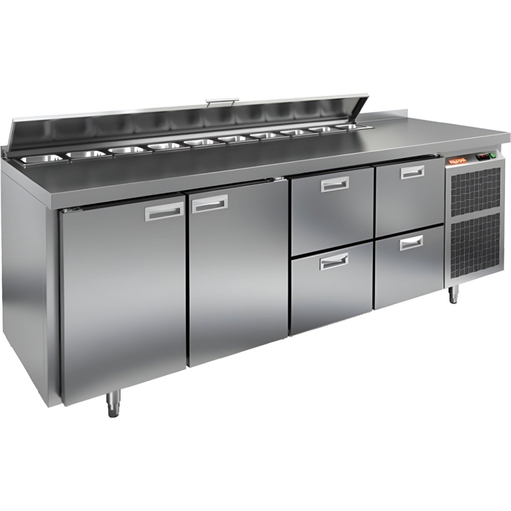 Каталог оборудования Холодильное оборудованиеСтолы охлаждаемыеСтолы холодильные для салатовСтол холодильный для салатов HiCold SL1-332GN (1/3) с крышкой Стол холодильный для салатов HiCold SL1-332GN (1/3) с крышкой Код товара: 064-851 Поделиться: WhatsAppTelegram СравнитьДобавить в КПВ избранное 0 290 692 ₽ В корзину 0 шт Под заказСамовывоз сегодня бесплатно Взять в кредит Купить в лизинг Получить консультацию в WhatsApp Описание Характеристики Отзывы 0 Инструкции 1 Стол холодильный для салатов HiCold SL1-332GN (1/3) предназначен для использования на предприятиях общественного питания и торговли. Он объединяет рабочую поверхность и охлаждаемый отсек, что делает его удобным решением для хранения, охлаждения и подготовки ингредиентов при приготовлении салатов, пиццы и других блюд. Такая конструкция позволяет повару работать быстрее и эффективнее, так как все необходимые продукты находятся под рукой. Корпус и столешница выполнены из прочной нержавеющей стали, устойчивой к коррозии и легко поддающейся санитарной обработке. Металлическая крышка защищает продукты от загрязнений и сохраняет их свежесть. Особенности модели: Электронная панель управления — точная настройка температурного режима. 8 выдвижных ящика — быстрое размещение и замена продуктов. Вместимость салат-бара — до 8 гастроемкостей глубиной до 100 мм. Автоматические доводчики — комфорт при загрузке/выгрузке. Легкозаменяемые магнитные уплотнители — надежная герметичность. Открытая агрегатная часть — быстрый доступ для обслуживания. Регулируемые по высоте ножки — устойчивость даже на неровном полу. Толщина столешницы, борта и теплоизоляции — 50 мм, что обеспечивает прочность и энергоэффективность конструкции. HiCold SL1-332GN (1/3) — практичное и удобное решение для профессиональной кухни, обеспечивающее удобную подготовку и хранение ингредиентов.Изображение товара, представленного на фото, может отличаться от его фактического вида. Показать все Габаритные размеры1835×700×850 ммДиапазон рабочей температурыот +2 до +10 °CРасположение агрегатаБоковое Материал столешницыНержавеющая Тип столаС дверьми и ящиками Тип двериГлухая Объём505 лКоличество дверей2 штТип гастроемкостейGN 1/3 Количество ящиков6 штРазмер полки530×325 ммНапряжение220 ВМощность0,46 кВтТип охлажденияДинамическое Тип оттайкиАвтоматическая СтолешницаС бортом Габариты в упаковке2000×850×1000 ммВес нетто120 кгВес брутто140 кгБрендHicold Оставить отзыв Еще никто не оставил отзыв на этот товар Декларация о соответствии.pdf Ранее просмотрено Под заказ 164 961 ₽ Стол холодильный для салатов HiCold SL2-11SN (1/6) М с крышкой Под заказ 168 382 ₽ Стол холодильный для салатов HiCold SLE2-1111GN (1/6) О без крышки Под заказ 239 032 ₽ Стол холодильный для салатов HiCold SLE2-222GN (1/6) О с крышкой Под заказ 140 482 ₽ Стол холодильный для салатов HiCold SL2-11GN (1/6) без крышки Под заказ 778 444 ₽ Котел пищеварочный Аbat КПЭМ-160-ОМ2 со сливным краном