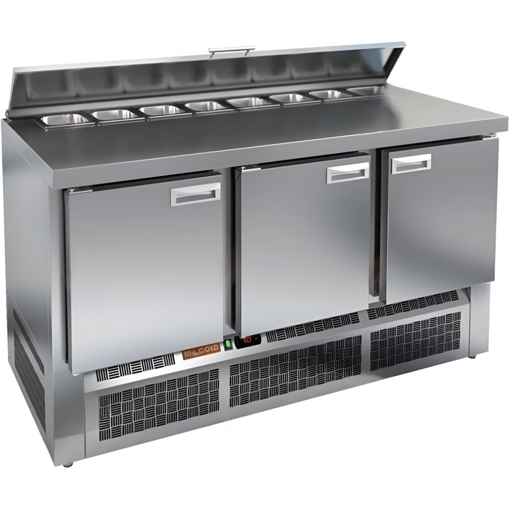 Каталог оборудования Холодильное оборудованиеСтолы охлаждаемыеСтолы холодильные для салатовСтол холодильный для салатов HiCold SLE1-111GN (1/3) О с крышкой Стол холодильный для салатов HiCold SLE1-111GN (1/3) О с крышкой Код товара: 064-541 Поделиться: WhatsAppTelegram СравнитьДобавить в КПВ избранное 0 147 591 ₽ В корзину 0 шт Под заказСамовывоз сегодня бесплатно Взять в кредит Купить в лизинг Получить консультацию в WhatsApp Описание Характеристики Отзывы 0 Инструкции 2 Стол холодильный для салатов HiCold SLE1-111GN (1/3) О с крышкой предназначен для предприятий общественного питания и торговли. Он позволяет хранить и обрабатывать ингредиенты для пиццы, салатов и других блюд, а также охлаждать и кратковременно хранить скоропортящиеся продукты и напитки. Модель совмещает рабочую поверхность и охлаждаемый объем, что обеспечивает удобство работы повара: все необходимые компоненты всегда под рукой. Корпус и столешница выполнены из нержавеющей стали, что гарантирует долговечность и простоту ухода. Особенности: Динамическая система охлаждения — равномерное распределение температуры по всему объему. Автоматическая оттайка — упрощает уход за оборудованием. Электронная панель управления — удобная настройка температуры и режимов работы. 2 вместительные внутренние полки формата GN 1/1 — оптимальное хранение ингредиентов. Автоматические доводчики дверей с фиксатором открытого положения — комфорт и безопасность работы. Легкозаменяемые магнитные уплотнители — простота обслуживания. Открытая агрегатная часть — облегчает доступ для обслуживания. Регулируемые по высоте ножки — адаптация к рабочей поверхности. Размер полки: 530×325 мм (GN 1/1) Максимальная глубина гастроемкостей: 100 мм Столешница без борта и с крышкой: толщина столешницы и теплоизоляции — 50 мм, высота борта — 50 мм HiCold SLE1-111GN (1/3) О с крышкой — надежный и удобный стол для профессиональной кухни. Он обеспечивает эффективное охлаждение и хранение ингредиентов, а комбинированная рабочая поверхность с холодильным объемом упрощает работу повара, делая процесс приготовления быстрее и удобнее.Изображение товара, представленного на фото, может отличаться от его фактического вида. Показать все Габаритные размеры1485×700×800 ммДиапазон рабочей температурыот +2 до +10 °CРасположение агрегатаНижнее Материал столешницыНержавеющая Тип столаС дверьми Тип двериГлухая Объём375 лКоличество дверей3 штТип гастроемкостейGN 1/3 Размер полки530×325 ммНапряжение220 ВМощность0,22 кВтТип охлажденияДинамический Тип оттайкиАвтоматическая СтолешницаБез борта Вес нетто115 кгВес брутто176 кгБрендHicold Оставить отзыв Еще никто не оставил отзыв на этот товар Паспорт на HICOLD SLE1-111GN.pdfДекларация о соответствии.pdf Ранее просмотрено Под заказ 235 882 ₽ Стол холодильный для салатов HiCold SLE2-222GN (1/6) без крышки Под заказ 120 411 ₽ Стол холодильный для салатов HiCold SLE1-11SN (1/3) без крышки Под заказ 146 692 ₽ Стол холодильный для салатов HiCold SLE1-11GN (1/3) М с крышкой Под заказ 120 862 ₽ Стол холодильный для салатов HiCold SLE1-11GN (1/3) без крышки Под заказ 212 481 ₽ Стол холодильный для салатов HiCold SL2-113SN (1/6) с крышкой Под заказ 167 391 ₽ Стол холодильный для салатов HiCold SLE1-1111GN (1/3) без крышки Под заказ 238 942 ₽ Стол холодильный для салатов HiCold SLE1-222SN (1/3) с крышкой