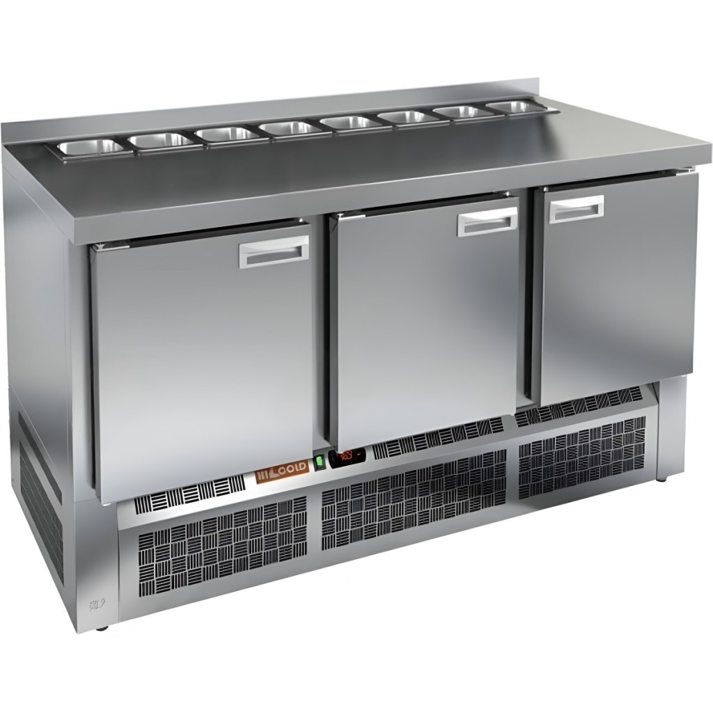 Каталог оборудования Холодильное оборудованиеСтолы охлаждаемыеСтолы холодильные для салатовСтол холодильный для салатов HiCold SLE2-111GN (1/6) без крышки Стол холодильный для салатов HiCold SLE2-111GN (1/6) без крышки Код товара: 064-863 Поделиться: WhatsAppTelegram СравнитьДобавить в КПВ избранное 0 144 082 ₽ В корзину 0 шт Под заказСамовывоз сегодня бесплатно Взять в кредит Купить в лизинг Получить консультацию в WhatsApp Описание Характеристики Отзывы 0 Инструкции 2 Стол холодильный для салатов HiCold SLE2-111GN (1/6) без крышки предназначен для предприятий общественного питания и торговли. Он используется для хранения, охлаждения и обработки ингредиентов, применяемых при приготовлении салатов, пиццы, закусок и других блюд. Модель объединяет удобную рабочую поверхность и охлаждаемый отсек, позволяя повару иметь все необходимое под рукой. Конструкция выполнена из прочной нержавеющей стали, устойчивой к коррозии и легкой в уходе. Особенности модели: Электронная панель управления — точная настройка температуры и контроль за режимами работы. 3 вместительные внутренние полки — рациональное распределение хранения. Салат-бар вмещает 8 гастроемкостей — оптимальная организация ингредиентов. Автоматические доводчики дверей с фиксацией в открытом положении — удобно при загрузке и выгрузке продуктов. Магнитные уплотнители — легко заменяются, обеспечивая герметичность. Открытая агрегатная часть — упрощает техническое обслуживание. Регулируемые по высоте ножки — позволяют установить оборудование на любой поверхности. Глубина гастроемкостей — до 100 мм. Толщина столешницы, борта и теплоизоляции — по 50 мм, что способствует сохранению холода и прочности конструкции. HiCold SLE2-111GN (1/6) без крышки — это функциональный и надёжный салатный стол, сочетающий в себе удобство работы и эффективное охлаждение. Отличное решение для кухни с интенсивной нагрузкой. Изображение товара, представленного на фото, может отличаться от его фактического вида. Показать все Габаритные размеры1485×700×850 ммДиапазон рабочей температурыот +2 до +10 °CРасположение агрегатаНижнее Материал столешницыНержавеющая Тип столаС дверьми Тип двериГлухая Объём375 лКоличество дверей3 штТип гастроемкостейGN 1/6 Размер полки530×325 ммНапряжение220 ВМощность0,22 кВтТип охлажденияДинамическое Тип оттайкиАвтоматическая СтолешницаС бортом Габариты в упаковке1700×850×1080 ммВес нетто115 кгВес брутто160 кгБрендHicold Оставить отзыв Еще никто не оставил отзыв на этот товар Паспорт на HICOLD SLE2-111GN.pdfДекларация о соответствии.pdf Ранее просмотрено Под заказ 126 261 ₽ Стол холодильный для салатов HiCold SLES2-11SN без крышки Под заказ 174 501 ₽ Стол холодильный для салатов HiCold SLE3-1111GN без крышки Под заказ 139 852 ₽ Стол холодильный для салатов HiCold SLE3-111GN О без крышки Под заказ 185 031 ₽ Стол холодильный для салатов HiCold SLE2-22GN (1/6) с крышкой Под заказ 153 981 ₽ Стол холодильный для салатов HiCold SLE2-12SN (1/6) с крышкой Под заказ 208 432 ₽ Стол холодильный для салатов HiCold SLE2-122GN (1/6) с крышкой Под заказ 208 432 ₽ Стол холодильный для салатов HiCold SLE2-221GN (1/6) с крышкой