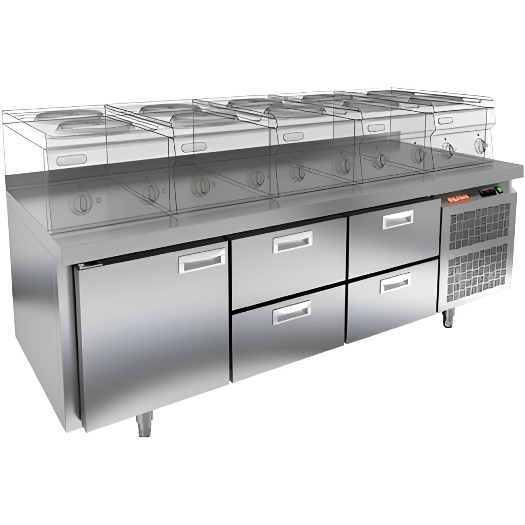 Каталог оборудования Холодильное оборудованиеСтолы охлаждаемыеСтолы холодильные под тепловое оборудованиеСтол охлаждаемый HiCold SN 222/TN LT под тепловое оборудование Стол охлаждаемый HiCold SN 222/TN LT под тепловое оборудование Код товара: 065-548 Поделиться: WhatsAppTelegram СравнитьДобавить в КПВ избранное 0 223 642 ₽ В корзину 0 шт Под заказСамовывоз сегодня бесплатно Взять в кредит Купить в лизинг Получить консультацию в WhatsApp Описание Характеристики Отзывы 0 Инструкции 2 Стол охлаждаемый HiCold SN 222/TN LT SH под тепловое оборудование предназначен для обработки ингредиентов и временного хранения скоропортящихся продуктов и напитков на предприятиях общественного питания и торговли. Устройство совмещает функции рабочей поверхности и холодильной камеры. Столешница рассчитана на установку теплового оборудования: под рабочей поверхностью встроен ДСП-лист, который укрепляет конструкцию и препятствует проникновению тепла внутрь. Такое решение обеспечивает дополнительную жесткость, позволяет рационально использовать рабочее пространство и повышает эффективность работы на кухне. Особенности: 6 выдвижных ящика — обеспечивают удобный доступ к продуктам и инвентарю Автоматические доводчики дверей с фиксатором открытого положения повышают эргономику и способствуют сохранению холода. Легкозаменяемые магнитные уплотнители обеспечивают плотное прилегание дверей и лёгкость в обслуживании. Открытая агрегатная часть упрощает доступ к компрессору при техническом обслуживании. Регулируемые по высоте низкие ножки — удобная установка и устойчивость стола даже на неровной поверхности. Толщина столешницы — 50 мм обеспечивает прочность рабочей поверхности. Высота борта — 50 мм предотвращает падение продуктов и инвентаря. Толщина теплоизоляции — 50 мм способствует энергоэффективности и стабильному температурному режиму. HiCold SN 222/TN LT SH — это надёжное и удобное оборудование, сочетающее охлаждение и рабочее пространство. Благодаря продуманной конструкции и совместимости с гастроемкостями GN 1/1, стол станет практичным решением для кухни любого профессионального уровня.Изображение товара, представленного на фото, может отличаться от его фактического вида. Показать все Габаритные размеры1835×600×675 ммДиапазон рабочей температурыот -2 до +10 °CМатериал столешницыНержавеющая Расположение агрегатаБоковое Объём320 лТип столаС ящиками Тип двериГлухая Количество ящиков6 штРазмер полки430×325 ммНапряжение220 ВМощность0,5 кВтТип охлажденияДинамический Тип оттайкиАвтоматическая СтолешницаС бортом Габариты в упаковке2380×740×970 ммВес нетто115 кгВес брутто155 кгБрендHicold Оставить отзыв Еще никто не оставил отзыв на этот товар Паспорт на HICOLD SN 222/TN LT SH.pdfДекларация о соответствии.pdf Похожие товары Перейти в каталог В наличии 128 777 ₽ Стол морозильный Cooleq GN3200BT с бортом Под заказ 166 404 ₽ Стол морозильный Abat СХН-70-02 без борта (дверь, дверь, дверь) С этим товаром покупают В наличии 140 675 ₽ Шкаф холодильный универсальный Polair CV 110-S Под заказ 76 010 ₽ Газовый лавовый гриль Abat ГЛК-40Н Ранее просмотрено Под заказ 87 472 ₽ Стол охлаждаемый HiCold GN 1/TN LT SH под тепловое оборудование