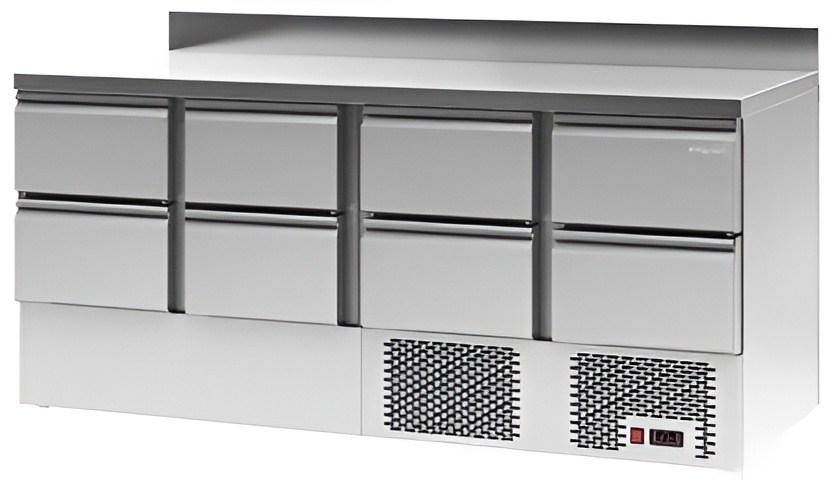 Каталог оборудования Холодильное оборудованиеСтолы охлаждаемыеСтолы холодильные среднетемпературныеСтол холодильный среднетемпературный Polair TMi4GN-2222-G Стол холодильный среднетемпературный Polair TMi4GN-2222-G Код товара: 062-578 Поделиться: WhatsAppTelegram СравнитьДобавить в КПВ избранное 0 265 574 ₽ В корзину 0 шт Под заказСамовывоз сегодня бесплатно Взять в кредит Купить в лизинг Получить консультацию в WhatsApp Описание Характеристики Отзывы 0 Стол холодильный среднетемпературный Polair TMi4GN-2222-G предназначен для хранения продуктов и подготовки ингредиентов на рабочей поверхности на предприятиях общественного питания и торговли. Цельнозаливные корпус и двери изготовлены из прочной стали, что обеспечивает высокую механическую прочность, надежную термоизоляцию, герметичность и долгий срок службы. Оборудование рассчитано на эксплуатацию при температуре окружающей среды до +43 °С и относительной влажности до 80%, что делает его отличным решением для профессиональных кухонь. Особенности: Электронный терморегулятор для точного и стабильного поддержания температуры; Класс защиты IP24, подходящий для работы в условиях повышенной влажности; Регулируемые по высоте ножки для удобства установки и устойчивости; Толщина столешницы — 40 мм, обеспечивающая прочность и устойчивость к нагрузкам; Толщина стенок корпуса — 43 мм для отличной теплоизоляции и долговечности; Тип полок: Gastronorm GN 1/1, удобный для использования стандартной гастроемкости; Оснащен 8 выдвижными ящиками, что значительно упрощает организацию хранения продуктов и обеспечивает быстрый доступ к ингредиентам. Polair TMi4GN-2222-G — это функциональный и надежный холодильный стол, который сочетает продуманную конструкцию с высокой вместимостью и удобством эксплуатации. Наличие восьми ящиков делает его особенно удобным для интенсивной работы на профессиональной кухне, где требуется быстрое и удобное хранение большого количества ингредиентов.Изображение товара, представленного на фото, может отличаться от его фактического вида. Показать все Габаритные размеры1850×700×910 ммДиапазон рабочей температурыот -2 до +10 °CРасположение агрегатаНижнее Материал столешницыНержавеющая Тип столаС ящиками Объём368 лКоличество ящиков8 штНапряжение220 ВМощность0,35 кВтТип охлажденияДинамическое Тип оттайкиАвтоматическая ХладагентR290 СтолешницаС бортом Габариты в упаковке2165×815×1045 ммВес нетто165 кгВес брутто200 кгБрендPolairВсе холодильные столы PolairВсе нержавеющие холодильные столы Все холодильные столы с бортом Оставить отзыв Еще никто не оставил отзыв на этот товар Ранее просмотрено Под заказ 243 167 ₽ Стол холодильный среднетемпературный Polair TMi4GN-0222-G