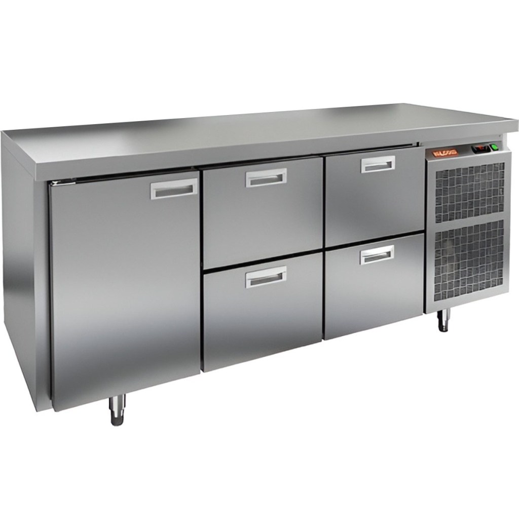 Каталог оборудования Холодильное оборудованиеСтолы охлаждаемыеСтолы морозильные низкотемпературныеСтол морозильный HiCold GN 122/BT O Стол морозильный HiCold GN 122/BT O Код товара: 065-055 Поделиться: WhatsAppTelegram СравнитьДобавить в КПВ избранное 0 236 152 ₽ В корзину 0 шт Под заказСамовывоз сегодня бесплатно Взять в кредит Купить в лизинг Получить консультацию в WhatsApp Описание Характеристики Отзывы 0 Инструкции 1 Стол морозильный HiCold GN122/BT О сочетает в себе удобную рабочую поверхность и вместительную морозильную камеру. Верхняя часть используется для раскатки теста и подготовки ингредиентов, а внутренняя камера предназначена для заморозки и хранения продуктов и полуфабрикатов. Стол оснащен одной глухой дверью и четырьмя выдвижными ящиками, что обеспечивает удобный доступ к продуктам и рациональное использование внутреннего пространства. Оборудование идеально подходит для предприятий общественного питания. Особенности: Совместимость с GN-стандартом — полки, направляющие и стойки полностью интегрируются с профессиональным кухонным оборудованием. Прочный цельнозаливной корпус из нержавеющей стали с 50 мм изоляцией обеспечивает высокую герметичность и жесткость конструкции. Столешница без борта для удобной работы с крупными и длинными заготовками. Электронный блок управления с повышенной надежностью и несколькими режимами оттаивания. Вентилятор увеличенной мощности и принудительная вентиляция по всему объему камеры для равномерного и быстрого охлаждения. Интеллектуальная система размораживания и термическое выпаривание конденсата снижают затраты на обслуживание. Экономичный компрессор нового поколения снижает энергопотребление. Облегченный доступ к агрегату упрощает сервисное обслуживание. Двери с доводчиками и ПЭН предотвращают примерзание и обеспечивают плотное закрытие. Регулируемые по высоте ножки для устойчивости на разных поверхностях. Максимальная нагрузка на полку — 50 кг. Высота борта рабочей поверхности — 50 мм. Температура окружающей среды: 12–32 °C. HiCold GN122/BT О — это надежный и функциональный морозильный стол, обеспечивающий удобство работы и эффективное хранение продуктов. Он идеально подходит для интенсивной эксплуатации на профессиональных кухнях ресторанов, кафе и предприятий общественного питания.Изображение товара, представленного на фото, может отличаться от его фактического вида. Показать все Габаритные размеры1835×700×850 ммДиапазон рабочей температурыот -18 до -10 °CРасположение агрегатаБоковое Материал столешницыНержавеющая Тип столаС дверьми и ящиками Тип двериГлухая Объём505 лКоличество дверей1 штКоличество полок1 штКоличество ящиков4 штНапряжение220 ВМощность0,6 кВтТип охлажденияДинамический Тип оттайкиАвтоматическая СтолешницаБзе борта Габариты в упаковке1960×845×995 ммВес нетто115 кгВес брутто135 кгБрендHicoldВсе морозильные столы HicoldВсе морозильные столы без борта Оставить отзыв Еще никто не оставил отзыв на этот товар Паспорт на HICOLD GN122/BT О.pdf Похожие товары Перейти в каталог Под заказ 169 732 ₽ Стол морозильный Abat СХН-70-02 без борта (дверь, дверь, дверь) Под заказ 156 861 ₽ Стол морозильный HiCold GN 111/BT W Ранее просмотрено Под заказ 205 552 ₽ Стол морозильный HiCold GN 112/BT O