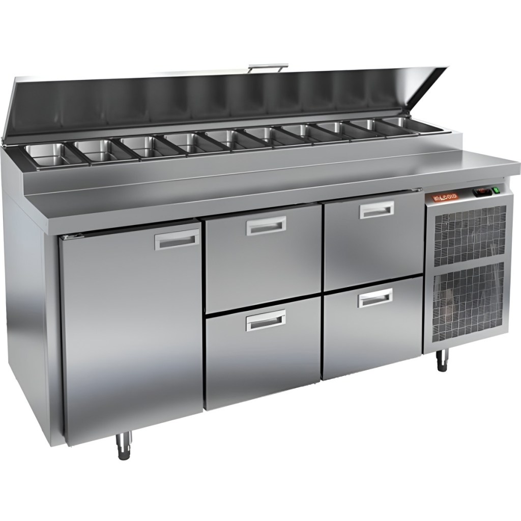 Каталог оборудования Холодильное оборудованиеСтолы охлаждаемыеСтолы холодильные для пиццыСтол холодильный для пиццы HiCold PZ1-122N (1/3) Стол холодильный для пиццы HiCold PZ1-122N (1/3) Код товара: 064-709 Поделиться: WhatsAppTelegram СравнитьДобавить в КПВ избранное 0 275 572 ₽ В корзину 0 шт Под заказСамовывоз сегодня бесплатно Взять в кредит Купить в лизинг Получить консультацию в WhatsApp Описание Характеристики Отзывы 0 Стол холодильный для пиццы HiCold PZ1-122GN (1/3) — профессиональное оборудование для предприятий общественного питания и торговли. Он сочетает рабочую поверхность для раскатки теста и подготовки ингредиентов с охлаждаемым блоком для кратковременного хранения скоропортящихся продуктов и напитков. Такое решение обеспечивает максимальное удобство — все необходимые компоненты всегда находятся под рукой. Корпус и столешница выполнены из нержавеющей стали, что гарантирует долговечность, устойчивость к повреждениям и лёгкость ухода. Основные особенности: Нержавеющая столешница и корпус — прочность, гигиеничность и лёгкость очистки Динамическая система охлаждения — равномерное распределение холода Автоматическая оттайка — стабильная работа без образования наледи Электронная панель управления — точная настройка температуры 1 дверца и 4 выдвижных ящика — удобная организация внутреннего пространства Автоматические доводчики дверцы и ящиков — комфорт при работе Легкозаменяемые магнитные уплотнители — поддержание герметичности Открытая агрегатная часть — лёгкий доступ для обслуживания Регулируемые по высоте ножки — установка на неровных поверхностях Максимальная глубина гастроёмкостей: 100 мм Глубина рабочей поверхности: 324 мм Толщина столешницы и теплоизоляции: 50 мм Вместимость салат-бара: до 10 гастроёмкостей Стол холодильный HiCold PZ1-122GN (1/3) — надёжный и функциональный холодильный стол для пиццы и салатов. Продуманная организация хранения и удобство эксплуатации обеспечивают быстрый доступ к ингредиентам и высокую производительность на профессиональной кухне.Изображение товара, представленного на фото, может отличаться от его фактического вида. Показать все Габаритные размеры1835×700×1000 ммДиапазон рабочей температурыот +2 до +10 °CРасположение агрегатаБоковое Материал столешницыНержавеющая Тип столаС дверьми и ящиками Тип двериГлухая Объём505 лТип гастроемкостейGN 1/3 Количество дверей1 штКоличество ящиков4 штРазмер полки530×325 ммНапряжение220 ВМощность0,5 кВтТип охлажденияДинамическое Тип оттайкиАвтоматическая Габариты в упаковке2000×850×1140 ммВес нетто172 кгВес брутто200 кгБрендHicoldВсе холодильные столы для пиццы HicoldВсе нержавеющие холодильные столы для пиццы Оставить отзыв Еще никто не оставил отзыв на этот товар Ранее просмотрено Под заказ 247 761 ₽ Стол холодильный для пиццы HiCold PZE2-221/GN (1/6H) Под заказ 244 971 ₽ Стол холодильный для пиццы HiCold PZ2-211/GN (1/6H) Под заказ 342 622 ₽ Стол холодильный для пиццы HiCold PZE1-2222GN (1/3) Под заказ 260 272 ₽ Стол холодильный для пиццы HiCold PZ1-113GN (1/3H)