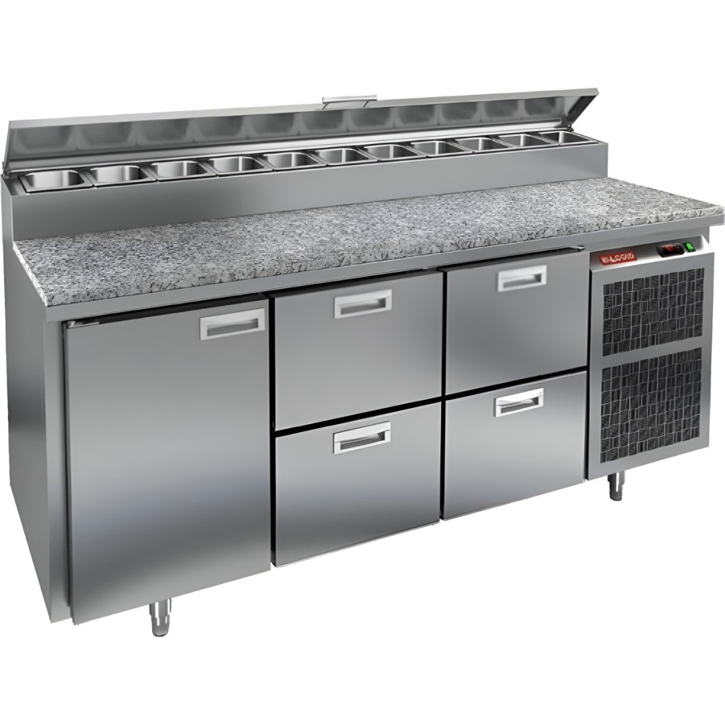 Каталог оборудования Холодильное оборудованиеСтолы охлаждаемыеСтолы холодильные для пиццыСтол холодильный для пиццы HiCold PZ2-122GN (1/6) камень Стол холодильный для пиццы HiCold PZ2-122GN (1/6) камень Код товара: 064-757 Поделиться: WhatsAppTelegram СравнитьДобавить в КПВ избранное 0 308 061 ₽ В корзину 0 шт Под заказСамовывоз сегодня бесплатно Взять в кредит Купить в лизинг Получить консультацию в Max Описание Характеристики Отзывы 0 Стол холодильный для пиццы HiCold PZ2-122GN (1/6) камень предназначен для кухонь и предприятий общественного питания. Он используется для раскатки теста, подготовки ингредиентов для пиццы, салатов и других блюд, а также для охлаждения и кратковременного хранения скоропортящихся продуктов. Модель совмещает гранитную рабочую поверхность и охлаждаемый отсек с 1 дверью и 4 ящиками, обеспечивая удобный доступ к ингредиентам и эффективное хранение. Особенности: Динамическая система охлаждения для равномерного поддержания температуры Автоматическая оттайка для удобного обслуживания Электронная панель управления для точной настройки параметров Вместительная внутренняя полка формата GN 1/1 (размер 530×325 мм) 1 дверь и 4 вместительных ящика для хранения ингредиентов Автоматические доводчики дверей с фиксатором открытого положения Легкозаменяемые магнитные уплотнители для герметичности Открытая агрегатная часть для легкого доступа к компонентам Регулируемые по высоте ножки для устойчивости Гранитная рабочая поверхность глубиной 486 мм и толщиной 50 мм — устойчива к повреждениям, высоким температурам и царапинам Толщина теплоизоляции: 50 мм Максимальная глубина гастроемкостей: 100 мм Вместимость салат-бара: 11 гастроемкости Стол холодильный HiCold PZ2-122GN (1/6) камень — это надёжный и функциональный стол для пиццы. Он сочетает рабочую поверхность и охлаждаемый отсек, облегчает хранение и подготовку ингредиентов, повышает удобство работы повара и соответствует стандартам профессиональной кухни.Изображение товара, представленного на фото, может отличаться от его фактического вида. Показать все Габаритные размеры1835×700×1000 ммДиапазон рабочей температурыот +2 до +10 °CРасположение агрегатаБоковое Материал столешницыГранитная Тип столаС дверьми и ящиками Тип двериГлухая Объём350 лТип гастроемкостейGN 1/6 Количество дверей1 штКоличество ящиков4 штРазмер полки530×325 ммНапряжение220 ВМощность0,5 кВтТип охлажденияДинамическое Тип оттайкиАвтоматическая Габариты в упаковке2000×850×1140 ммВес нетто172 кгВес брутто248 кгБрендHicoldВсе холодильные столы для пиццы Hicold Оставить отзыв Еще никто не оставил отзыв на этот товар Ранее просмотрено Под заказ 292 761 ₽ Стол холодильный для пиццы HiCold PZ2-113GN (1/6) камень Под заказ 119 332 ₽ Стол холодильный среднетемпературный HiCold SNEG 11 HT без столешницы Под заказ 132 652 ₽ Стол холодильный среднетемпературный HiCold GNG 11 HT без столешницы Под заказ 238 492 ₽ Стол холодильный для пиццы HiCold PZ1-12GN (1/3) камень Под заказ 290 061 ₽ Стол холодильный для пиццы HiCold PZ1-1111GN (1/3) камень
