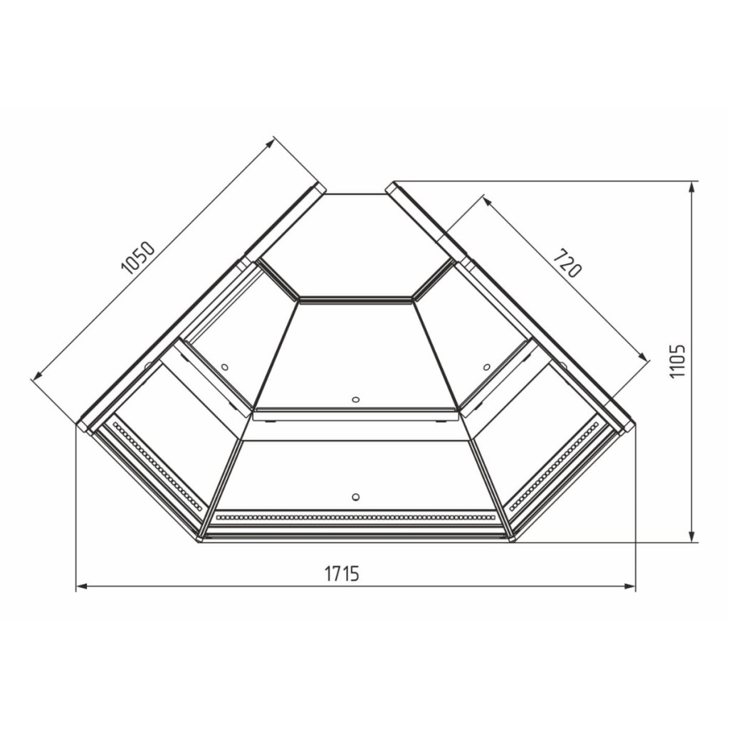 • Внешний угол: 90° — удобное соединение витрин в линию или остров.